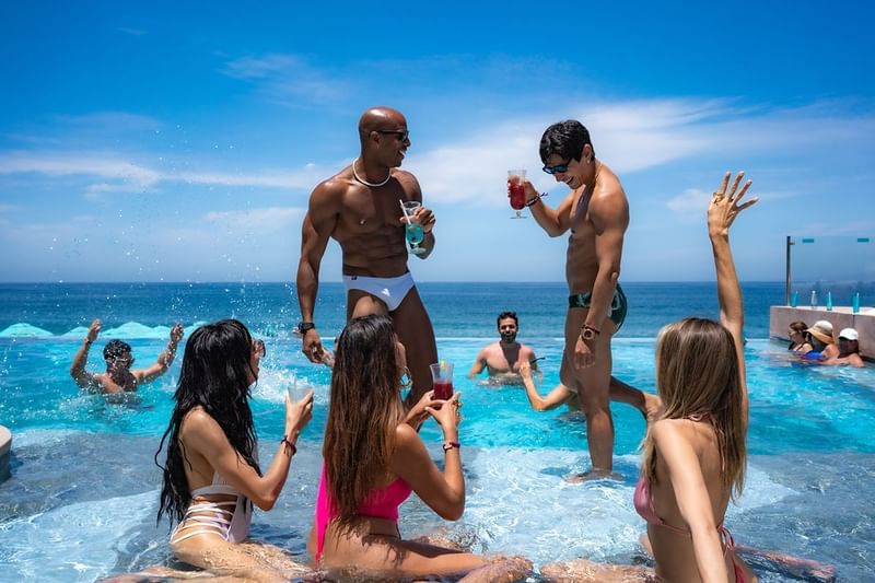 Sumérgete en nuestra hermosa piscina infinita, siempre adornada con las personas más sexys. Tómate un momento para relajarte en nuestra exclusiva zona de cabañas, que también ofrece camas balinesas. ¡Después, continúa la fiesta en el mismo lugar! Disfruta del sol y juega en la arena, y experimenta una auténtica fiesta temática junto a la piscina mientras refrescas tu paladar con nuestros cócteles exclusivos. Redescubre el romance en nuestro restaurante gourmet o disfruta de una noche divertida y agradable con tus amigos. Mantamar Beach Club ofrece mucho más de lo que puedes imaginar en la Playa de los Muertos, la playa gay más famosa de México.